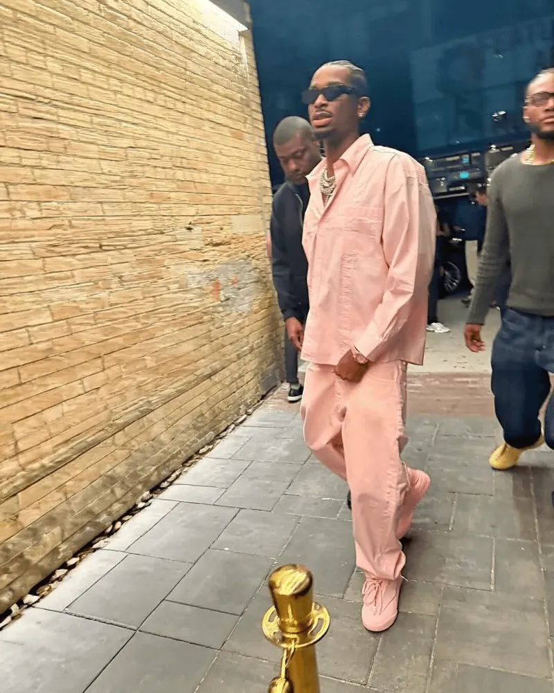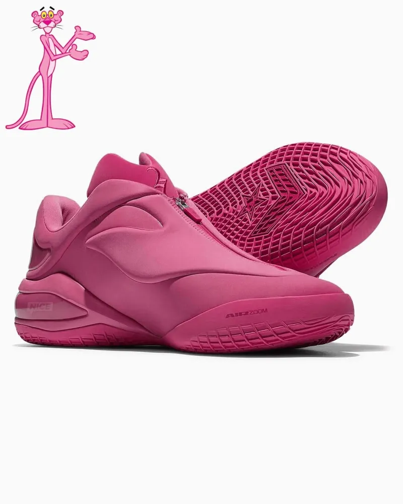 SGA此次穿着的粉色Shai001相较于此前流出的粉红豹联名配色,粉色更加浅淡。